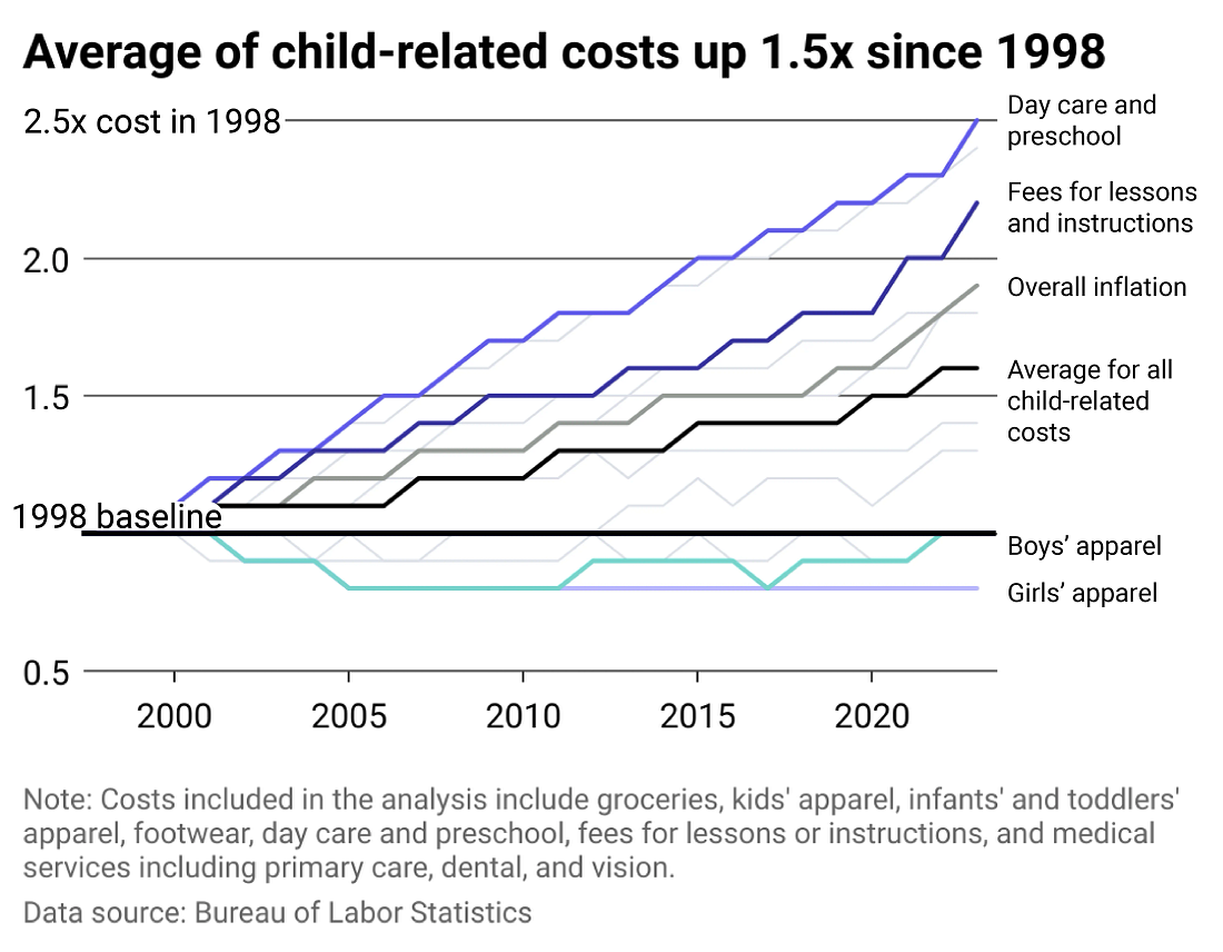 Inflation has caused certain costs of raising a child to go up 2-3 times over the last 30 years.